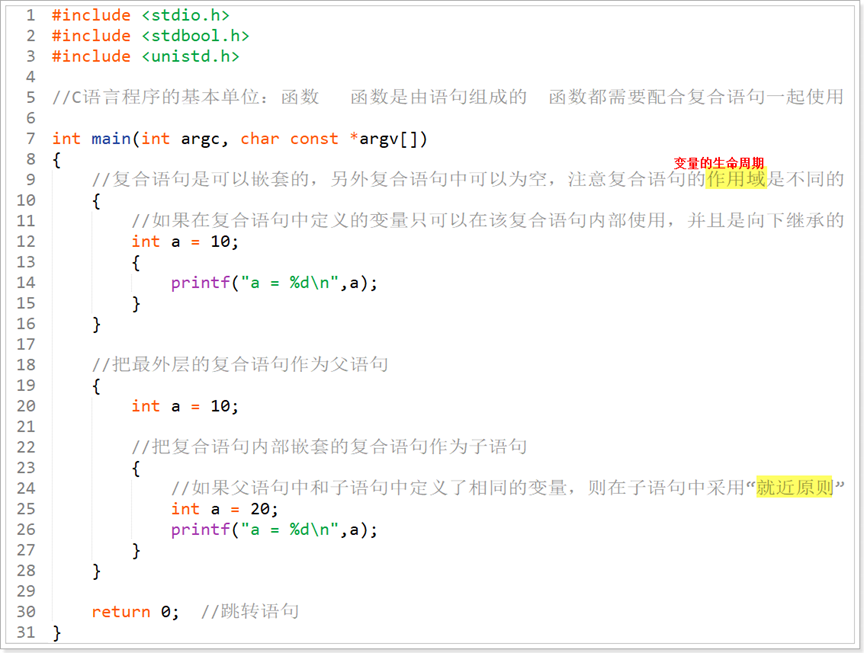 C语言的语句和块 C语言标准中一共提供6种语句 注意:C语言中的语句要指明执行的操作,并且没有特殊情况,语句是按照顺序执行的 一般把实现某些功能的语句整合在一起,构成一个语法单元,C语言标准的语法单元也被称为块,也被称为块语 ...