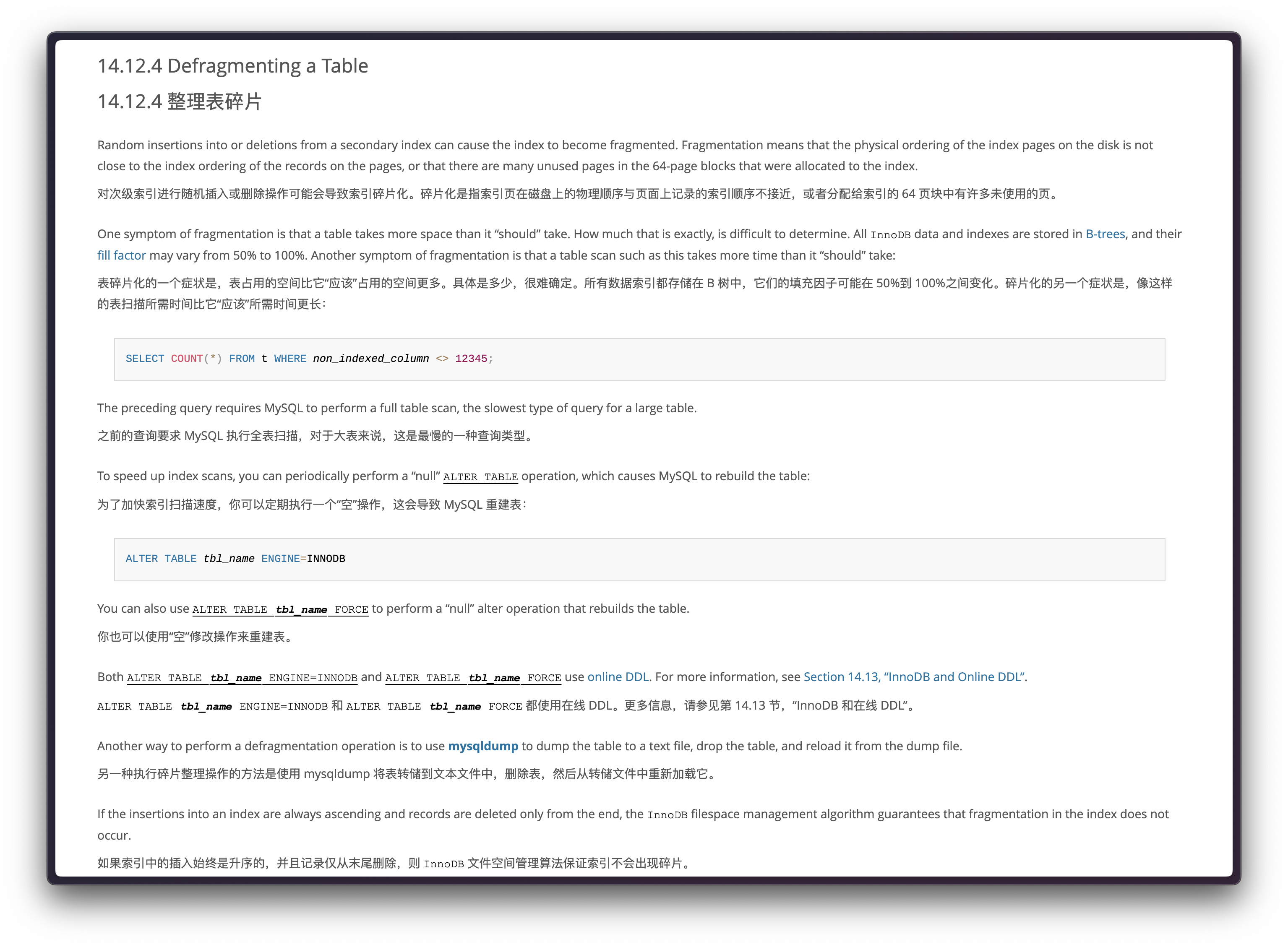 概述 最近为了对 MySQL 数据库磁盘占用瘦身,对一张近100GB表的历史数据进行了 delete 删除,删除了约2/3的数据,删除后发现该表占用的空间并未减少。通过下面语句查看该表的磁盘占用情况: 发现总的空间并没有发生变化,只是表数据空间 ...