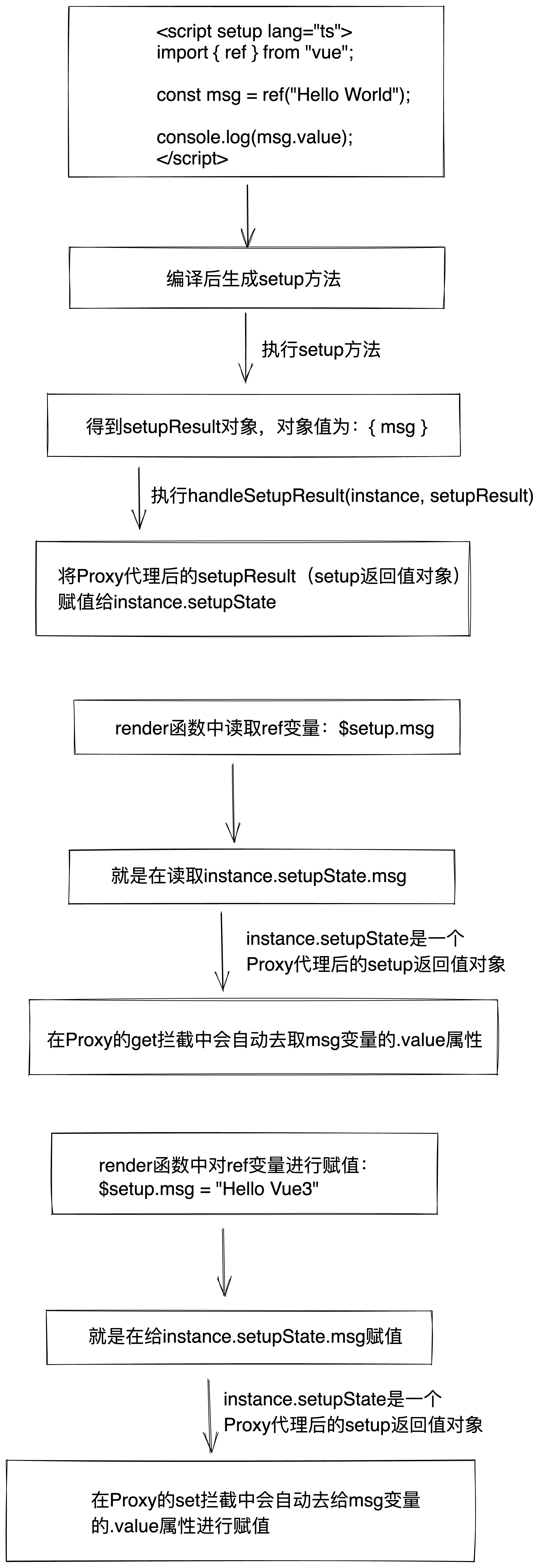 前言 众所周知,vue3的template中使用ref变量无需使用.value。还可以在事件处理器中进行赋值操作时,无需使用.value就可以直接修改ref变量的值,比如:change msg。你猜vue是在编译时就已经在代码中生成了.value,还是运行时使用Proxy拦 ...