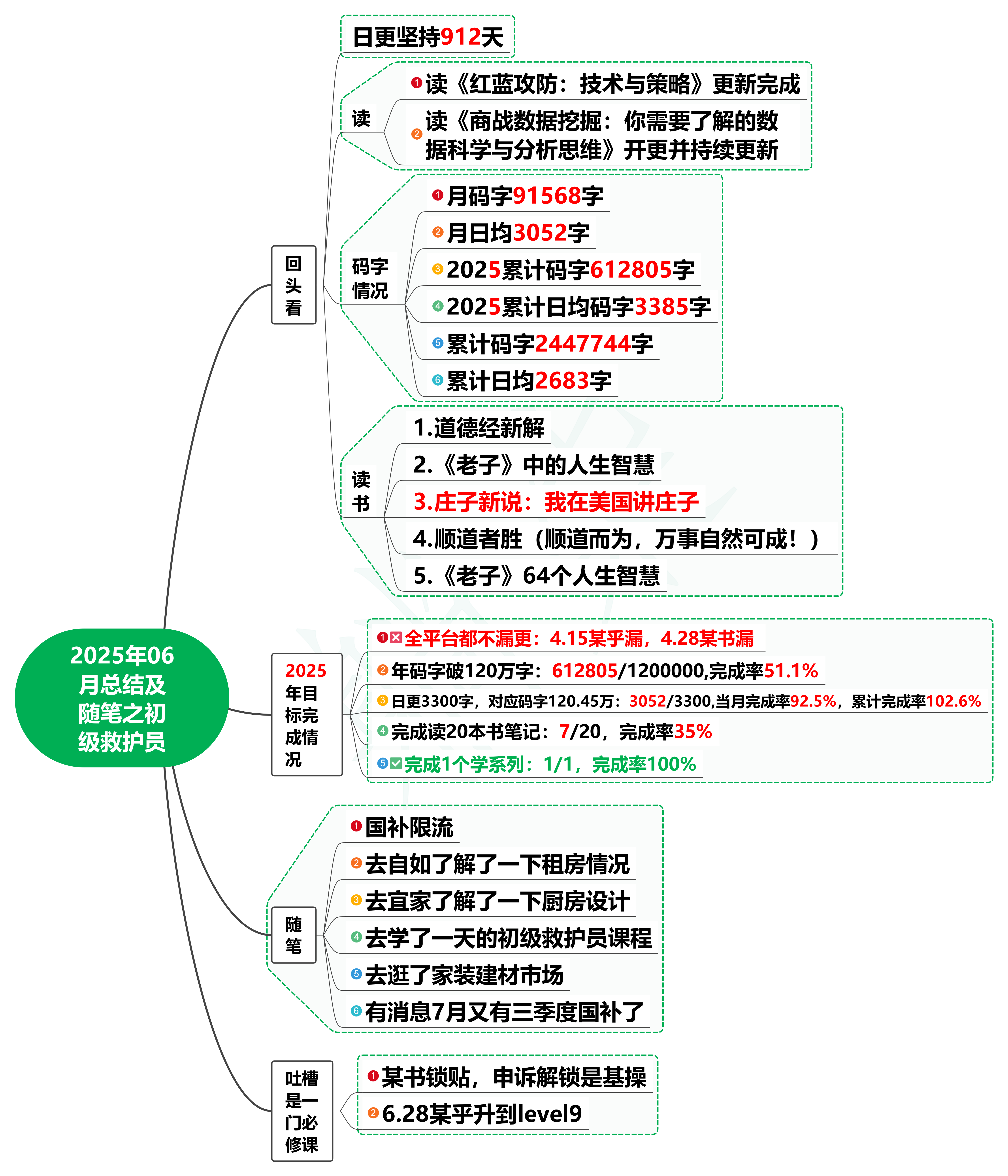 1. 回头看 日更坚持了912天。 [*]读《红蓝攻防:技术与策略》更新完成 [*]读《商战数据挖掘:你需要了解的数据科学与分析思维》开更并持续更新 2023年至2025年06月底累计码字2447744字,累计日均码字2683字。 2025年06月码字91568字 ...